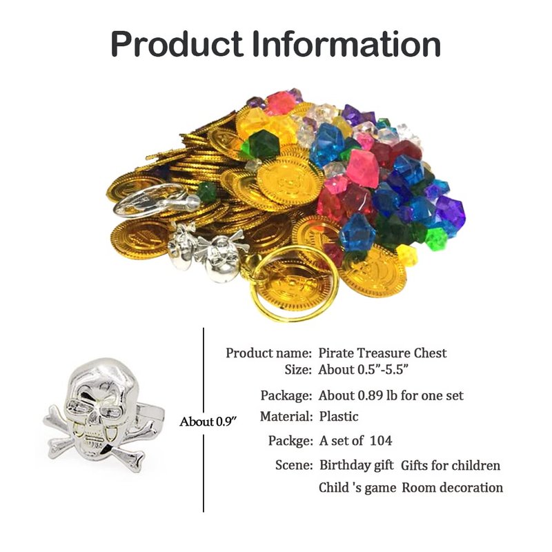 - 🎁【Reliable Material】: All pirate treasure toy are made of high quality plastic, golden yellow and beautiful appearance will easy to attract others, each pirate treasure meet US toy standard, ensuring kid's safe play, which can be applied for a long time.