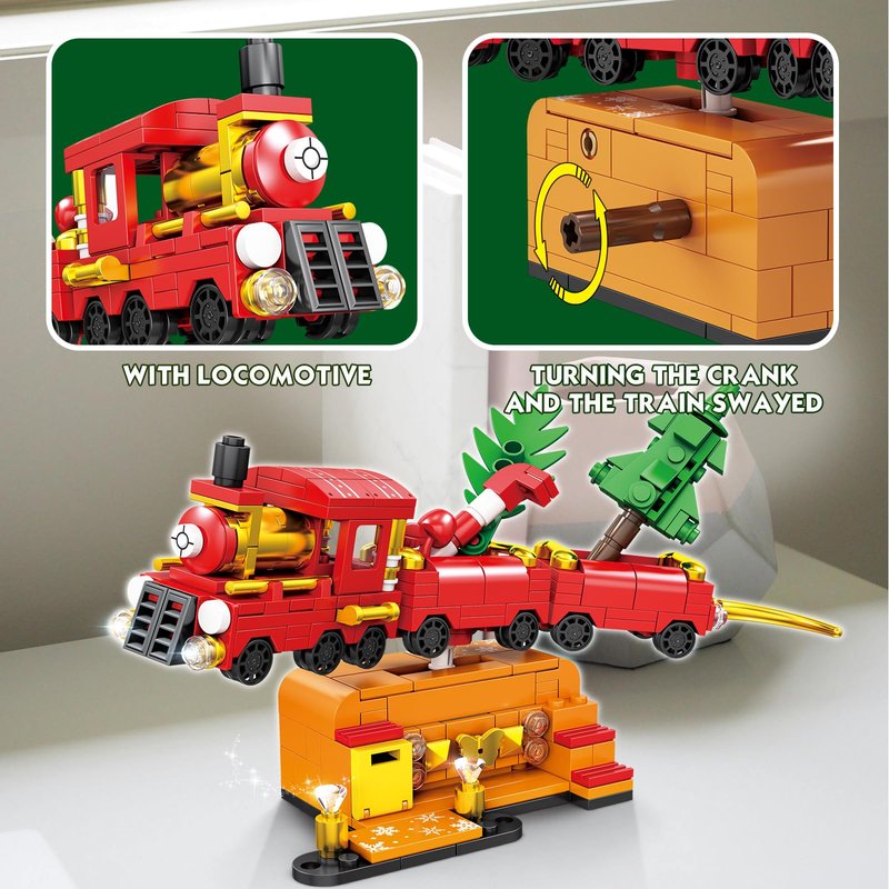 - Grow Creativity :Kids can enjoy building with friends and family over the holidays.After builds,turning the crank,the Christmas train can be swayed.Encourage kids to get creative with this Christmas train toys.