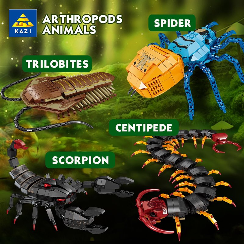 Let your child play out magical adventures in the forest with this KAZI gaint bug toys building set.This insect toys for boys age 8-14 makes a magical gift idea,and features the biggset ever and most realist KAZI bugs figure,with posable legs,fangs and pedipalps.Fans can bring their stories to life with this bugs building kit.This magical insect collection featuring a spider,a scorpions,a centipede and a trilobite (sold separately) that offer unlimited ways for fans to create their own spellbinding stories.