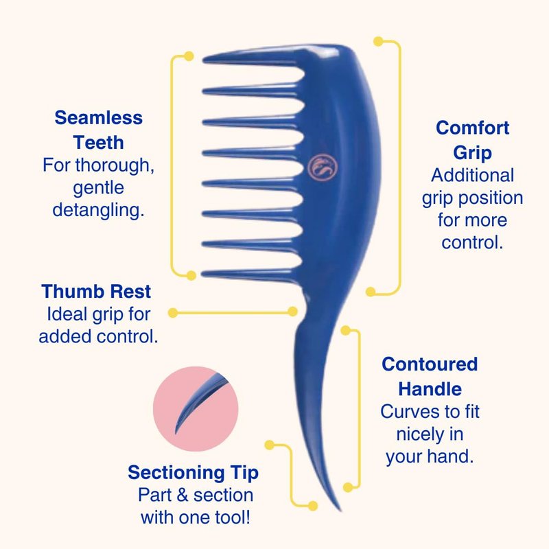 - COMFORTABLE GRIP: The comb is designed with multiple comfort grips for ease of use: a spine grip for versatile handling and a thumb groove with a curved handle that fits naturally into the contours of your hand. Enjoy effortless combing with enhanced comfort and control.
