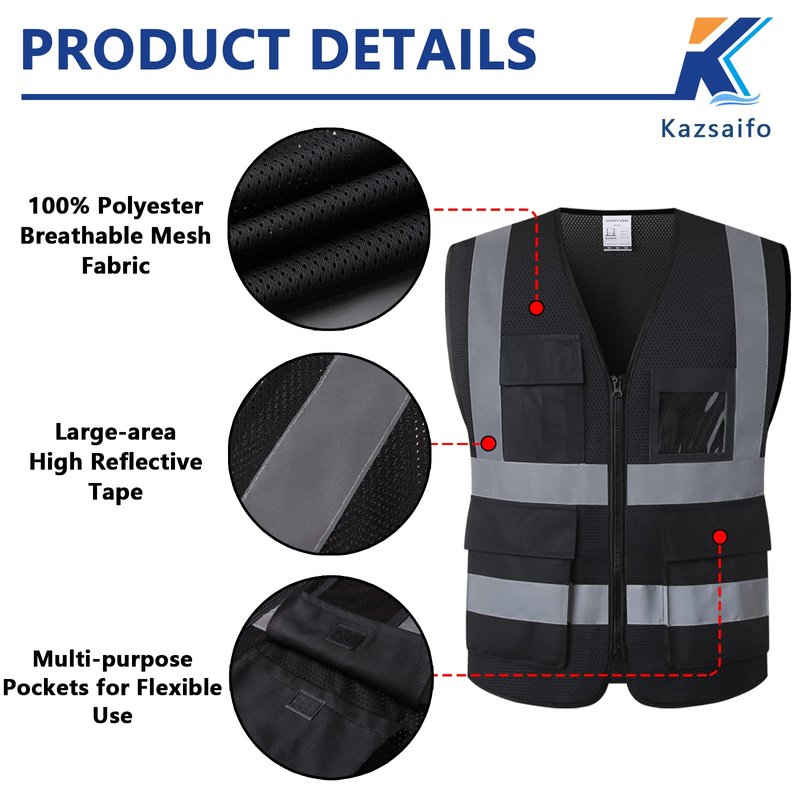 - PROTECT YOUR SAFETY: Kazsaifo hi viz construction safety vests with reflective strips cover your front, side and back. 360 degrees high vis safety vest can help you keep visible and safe in any situation and under any light conditions!