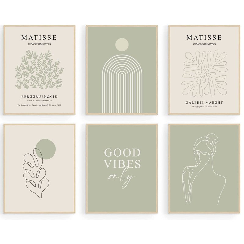 - 【Pefect Matisse Posters for Room Decor】With woman body lines, minimalist geometric patterns, Good Vibes Only Print and natural green color, the Sage Green Matisse Print can easily mix and match different home styles to create an elegant and cozy vibe to any space, like living room, aesthetic bedroom, kitchen, bathroom, dining room, office, hotel, restaurant, or any other occasion.
