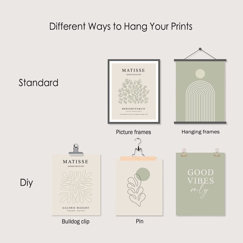 - 【Sage Green Matisse Wall Art Prints】 The Size of the sage green Matisse wall art set is: 8x10inch (20x25cmx6pcs). With abstract style and comfortable sage green color, the modern green Matisse gallery wall art is the best choice for Housewarming gifts or gallery decoration.