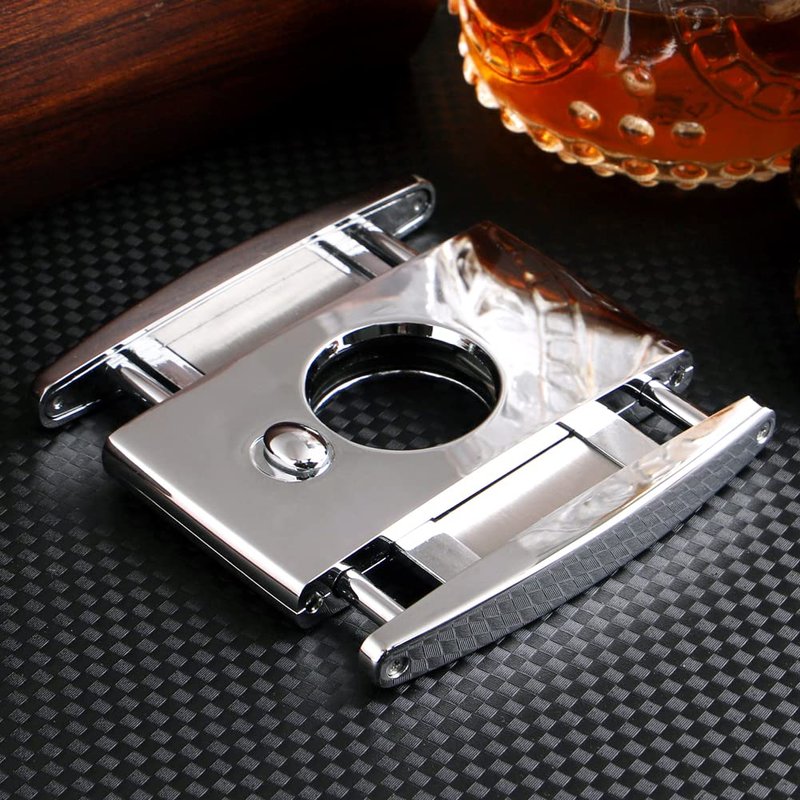 - High Quality: The shell material is made of zinc alloy, which has a high degree of non-slip and corrosion resistance. The double blades made of 420J2 stainless steel are sharp, hard and rust-proof.The precisely designed blade angle provides the best cutting depth, cutting cigars easily and smoothly without damaging the cigar cap.