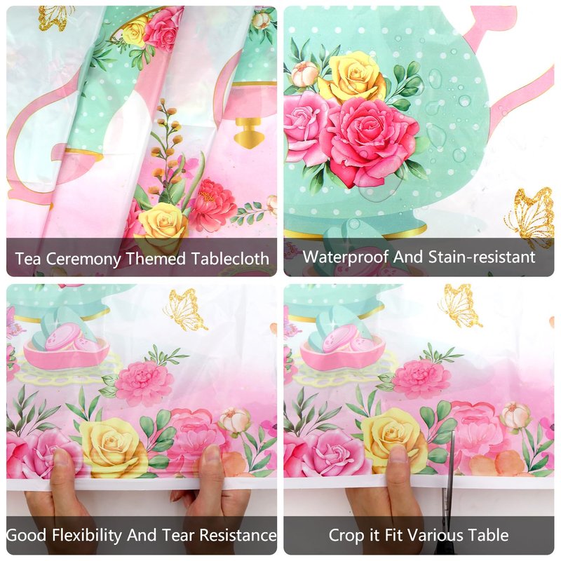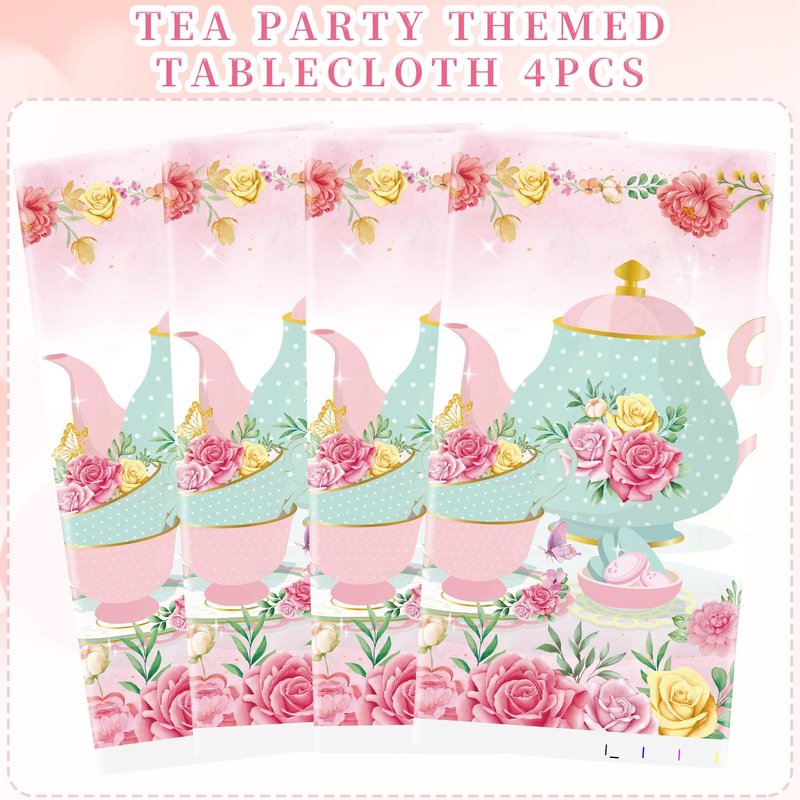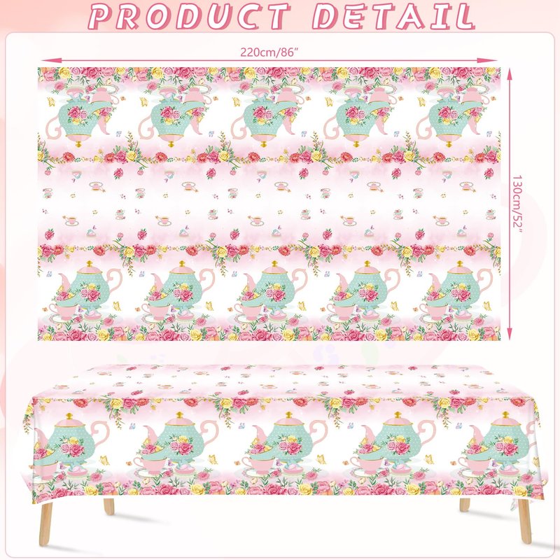 - Tea Birthday Party Decoration: You will receive 4 tea party tablecloths, 220 x 130 cm/ 86 x 52 inch tea plastic table covers