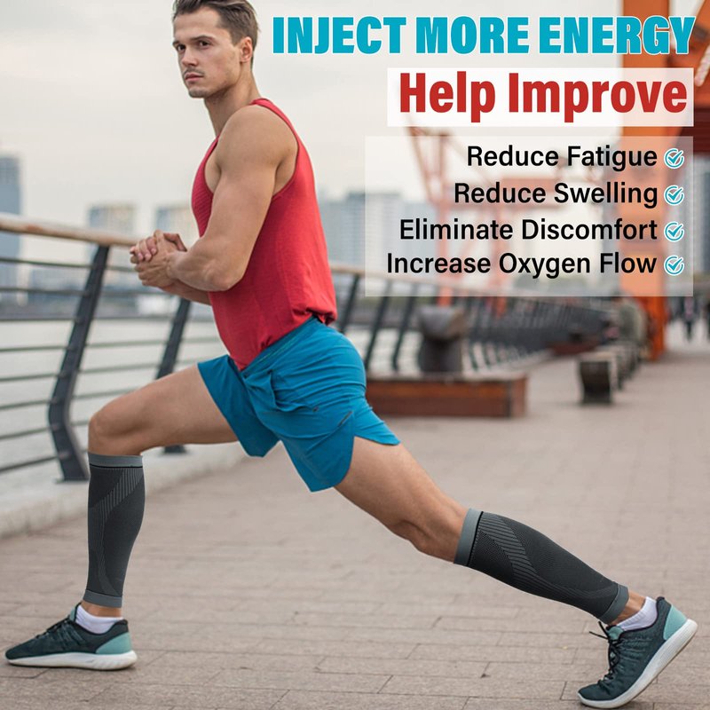 1. Our shin splint compression sleeve stimulates muscles to deliver oxygen while improving blood circulation. This aids in the recovery of joints and muscles, allowing you to rejuvenate from pain and discomfort.