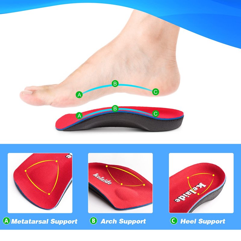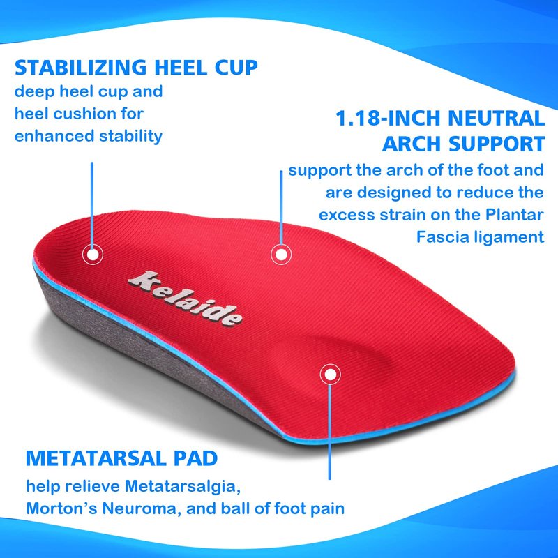 Plantar Fasciitis Insoles - Flat Feet Insoles - Arch Support Insoles - Comfort Shoe Insoles for Men and Women - Unisex Work and Sports Cushion Inserts for Walking and Standing - Kelaide 3/4 Orthotics Insoles for Foot, Arch and Heel Pain Relief arch support insoles women arch support flat feet insoles plantar fasciitis relief othotic insert flat feet orthotic inserts metatarsal insoles metatarsalgia heel inserts men heel spur relief heel supports for heel pain