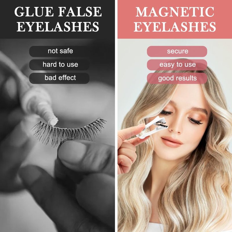 - 【MAGNETIC EYELASHES】The upgraded magnetic eyelashes provide you the experience of no glue and no eyeliner magnetic eyelashes kit. Our magnetic lashes comes with a powerful patented magnetic band which can supply a long-lasting strong hold for natrural look.