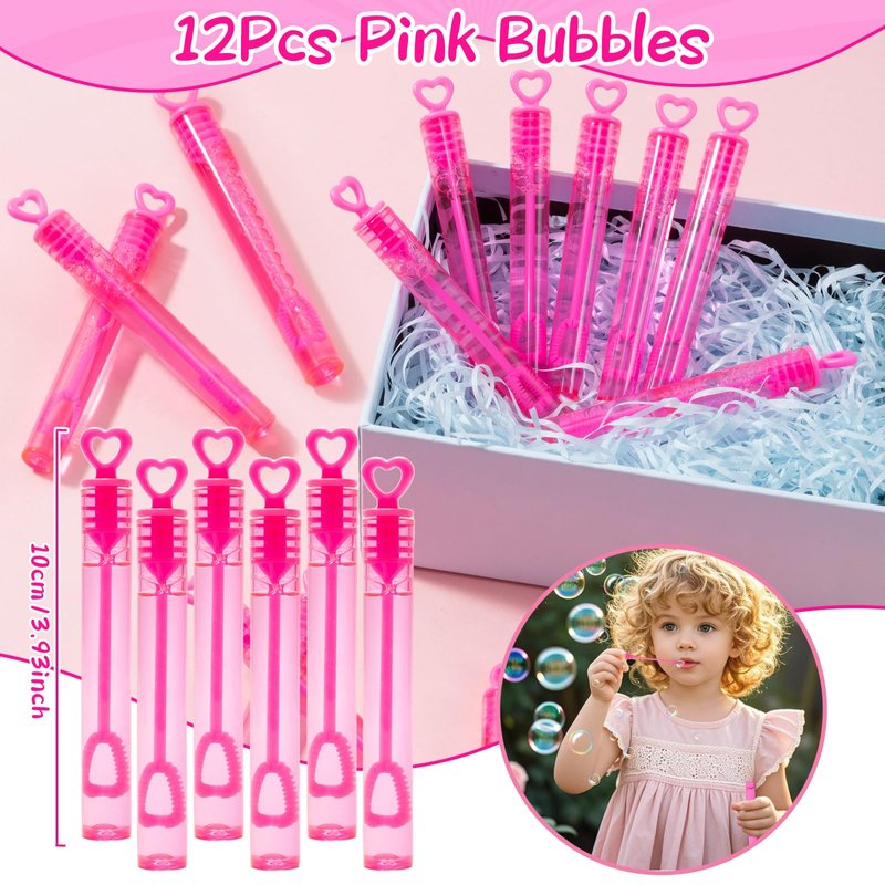 - TRUSTWORTHY QUALITY: We emphasize quality and comfort, and the 6 types of toys are all made of reliable materials. The straws are made of soft material, the silicone bracelet is made of silicone material, the bubble solution will not irritate the child's skin, and the stickers are waterproof and long-lasting, let pink-loving girls express her creativity freely, little princess can play with confidence