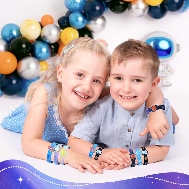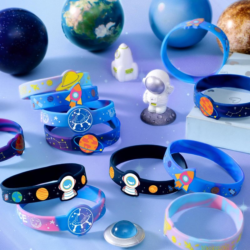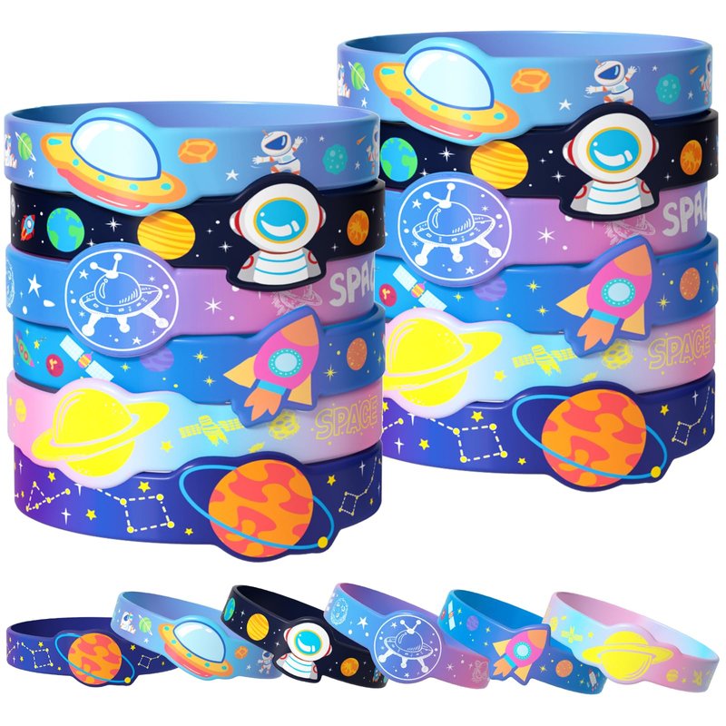 - Amazing Space Party Favors Set: Our space silicone bracelet bulk set is the ideal gift tailor-made for space lovers. Includes 24 silicone bracelets in 6 styles, each bracelet is carefully designed with a unique interstellar pattern. These bracelets not only add to the fun of the party, but are also ideal gifts to inspire children's interest in space exploration, making the party more interesting and bringing endless joy to kids boys girls