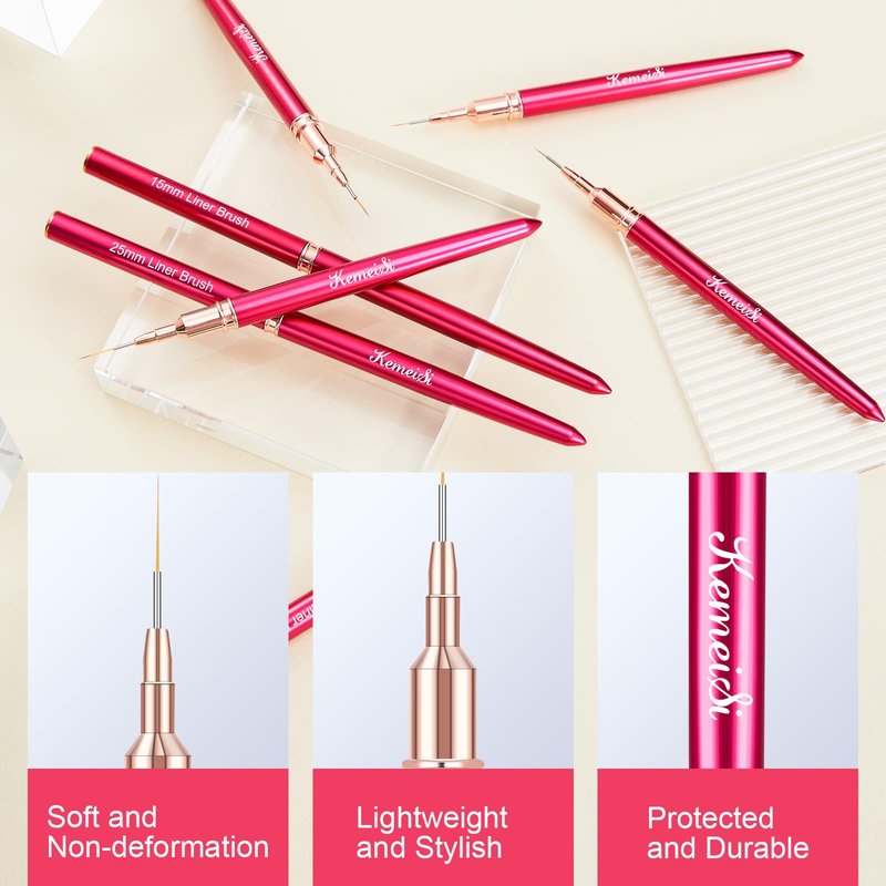 KEMEISI 6Pcs Nail Art Liner Brushes, Striping Nail Art Brush for Gel Polish Painting, Thin Detail Brush Fine Drawing Art Design Pen Size 5/7/9/11/15/25mm
