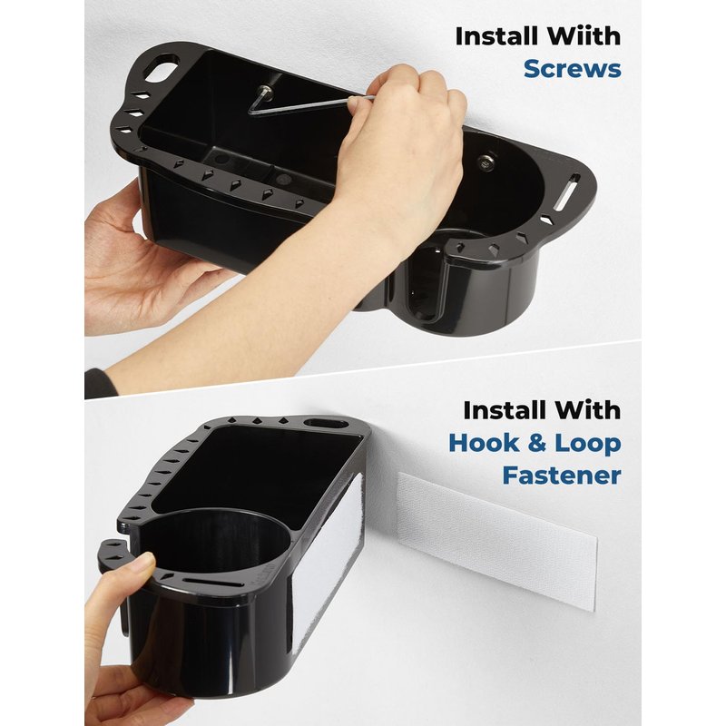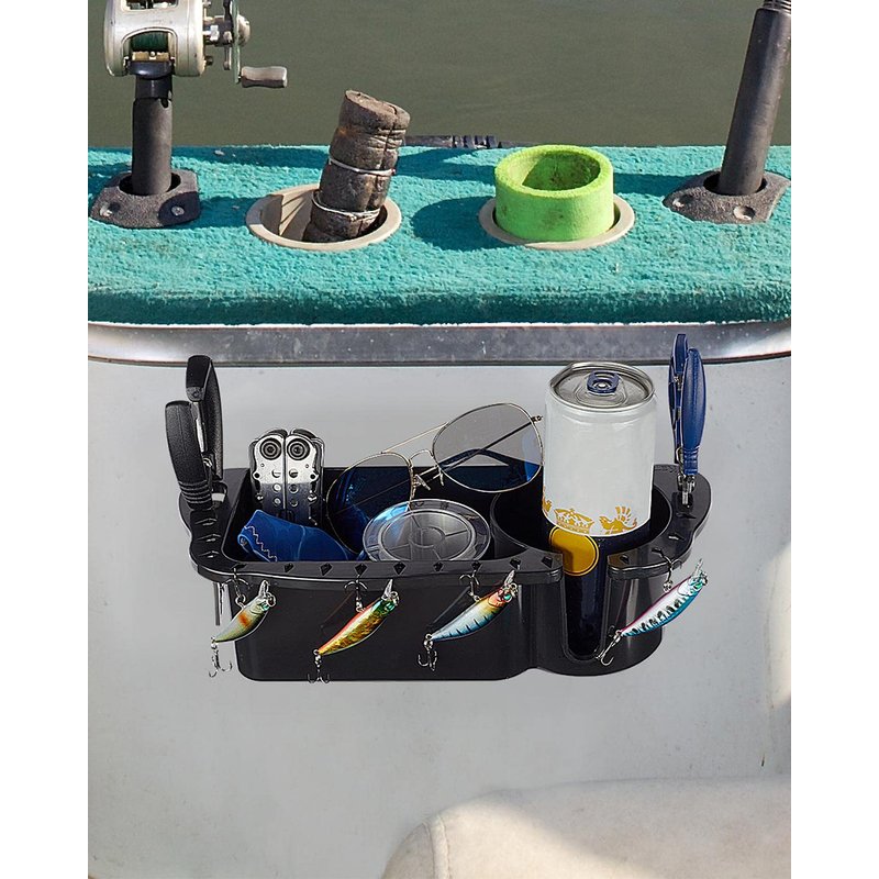 - Tough & Reliable - Made of high-quality ABS, it can hang firmly by attaching with screws. Unlike other suction cups that lose suction quickly, this boat fishing caddy is built to last. You can also use a hook & loop tape to install it temporarily.