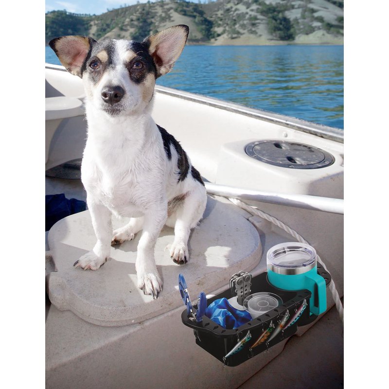 This boat organizer can hold your drinks, gadgets, pliers, knives, and more. The holes around the edge are great for hanging fishing lures. Whatever items you need, it always holds them in place and keeps them tidy
