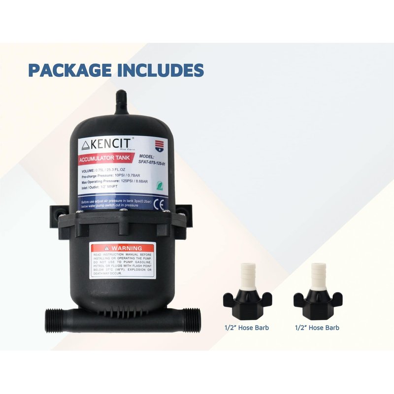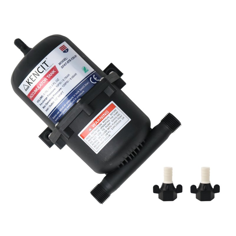 KENCIT Pre-Pressurized Accumulator Tank (0.75L, 125PSI), Flow Control Inner Bladder, Reduced Pump Cycling, Suitable for RV, Boat, Travel Trailer, Caravan.