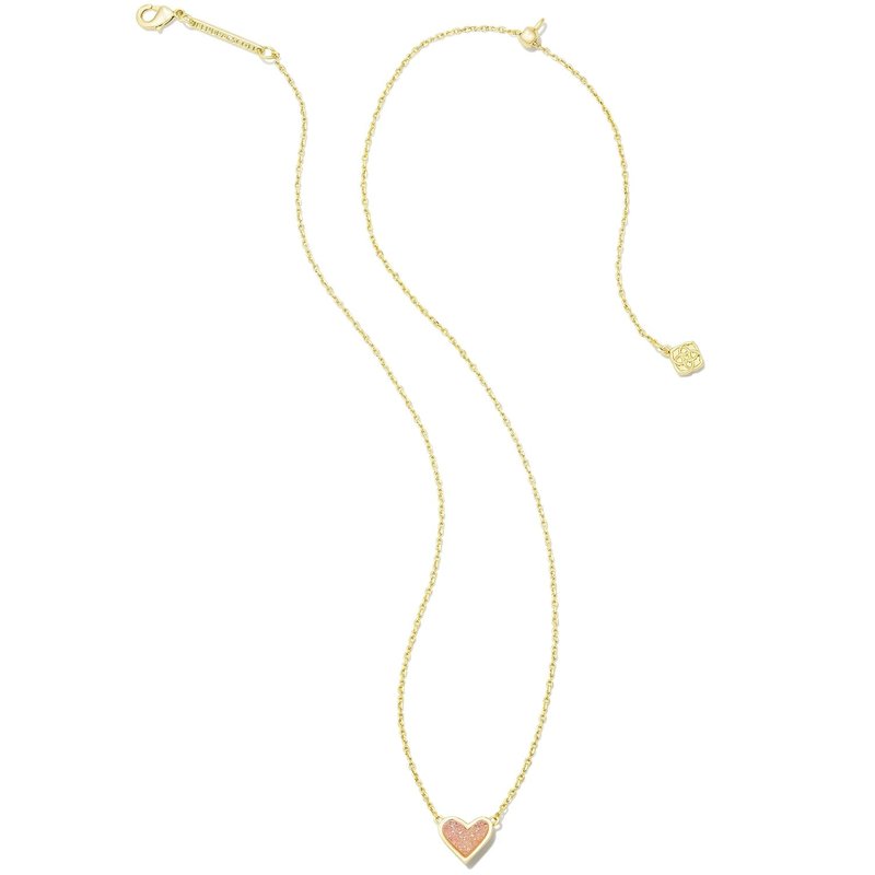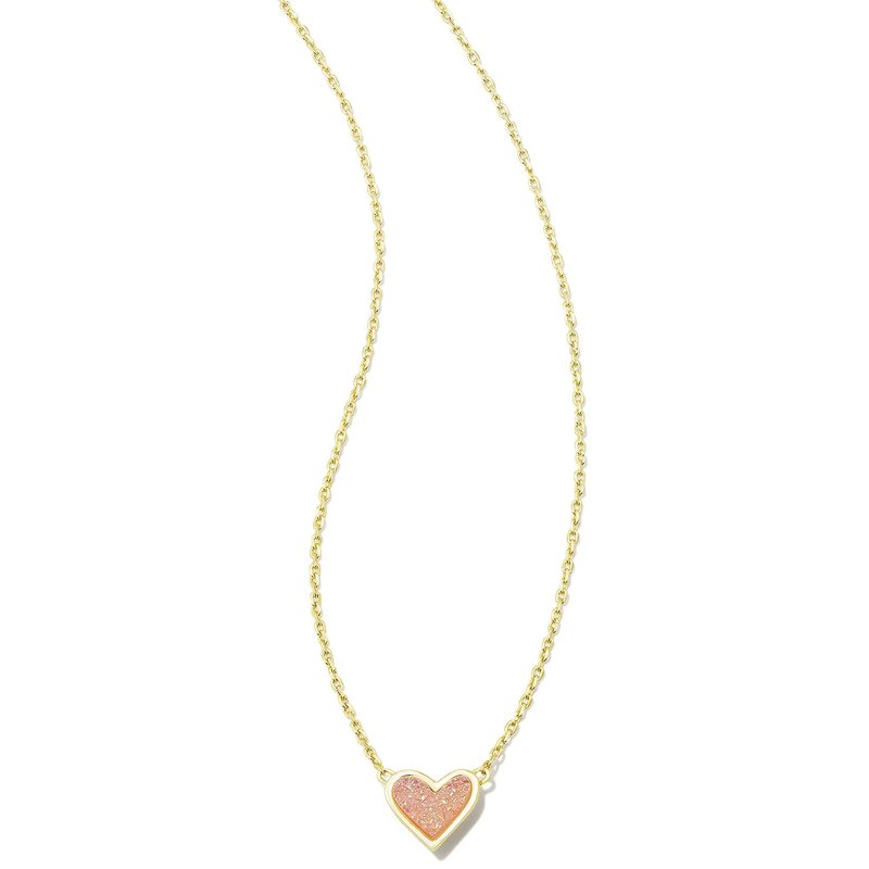 Kendra Scott Ari Heart Pendant Necklace for Women, Fashion Jewelry, 14k Gold-Plated Brass, Light Pink Drusy