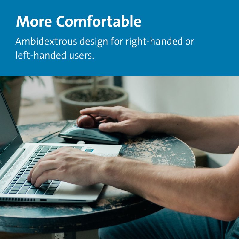- Requires less arm and wrist movement (for better comfort) and takes up less desk space than a traditional mouse