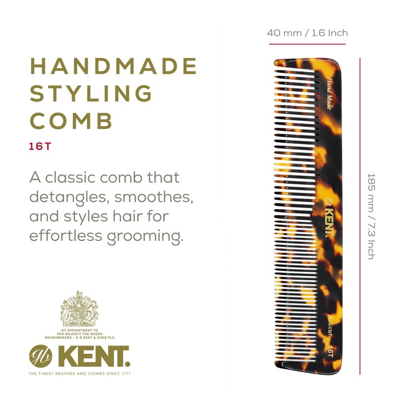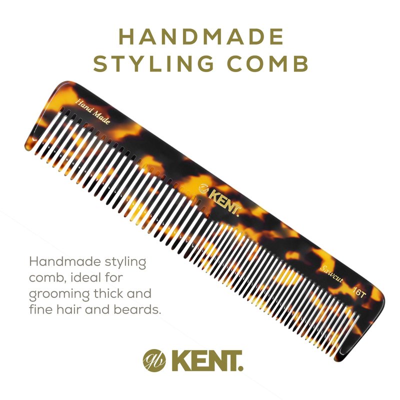 Kent 16T Fine Tooth Comb and Wide Tooth Comb Handmade Styling Comb - Beard Comb and Hair Comb, Mens Hair Comb, Mustache Comb, and Comb for Women - Hair Styling and Detangling Comb Detangler Comb