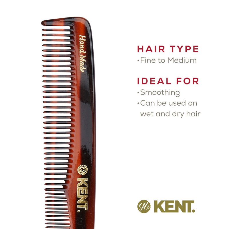- Handmade Kent comb: Handmade from a large sheets of cellulose acetate rather than being molded. This material is tactile, flexible and strong, a non-petroleum based derived from plants that has been found to create less static in hair, and is saw-cut to ensure a smooth surface that will not pull or snag hair follicles