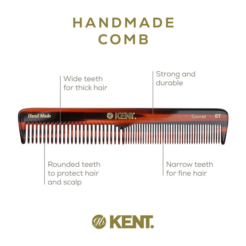 Kent 5T Fine Tooth Comb and Wide Tooth Comb Hair Comb for Hair Styling, Handmade Hair Comb for Men and Hair Combs for Women, Beard Comb and Mustache Comb - Saw Cut and Hand Polished Kent Comb