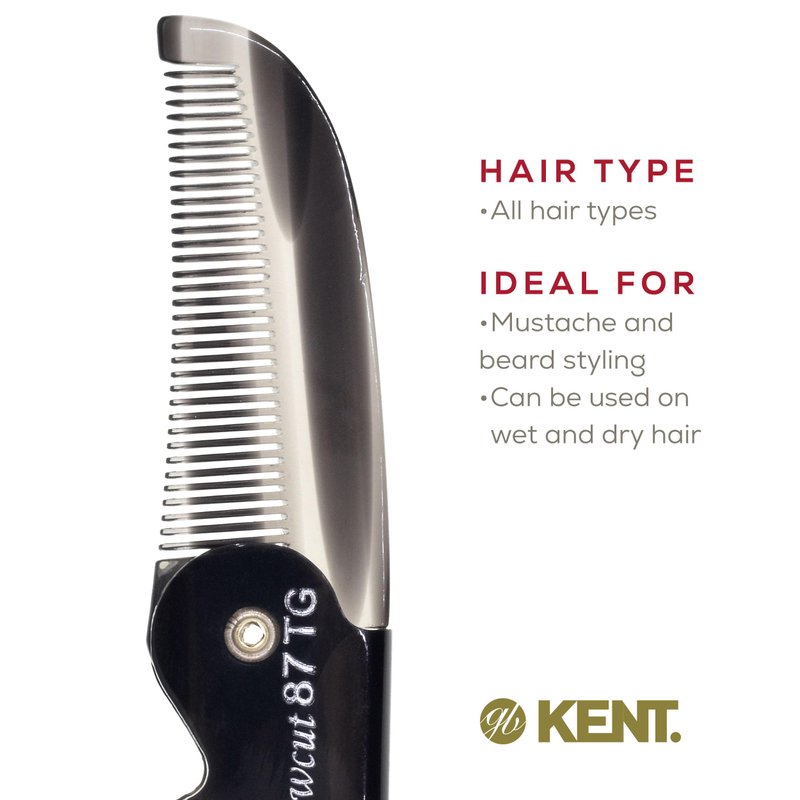 • 4.5 inch open / 2.5 inch closed - Tortoiseshell finish folding mens comb. The best Kent mustache and mustache combs for men hair comb, fits perfectly into your jeans or back pocket so you can groom your facial hair anytime, anywhere