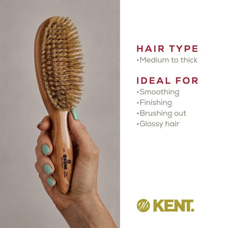 Kent LC4 Finest Hair Brushes for Women Detangler Dry Brush Made of Cherrywood - Boar Bristle Oval Hairbrush for Medium Thick Hair of All Lengths - Salon Style Straightening Pure Wood Brush from Kent