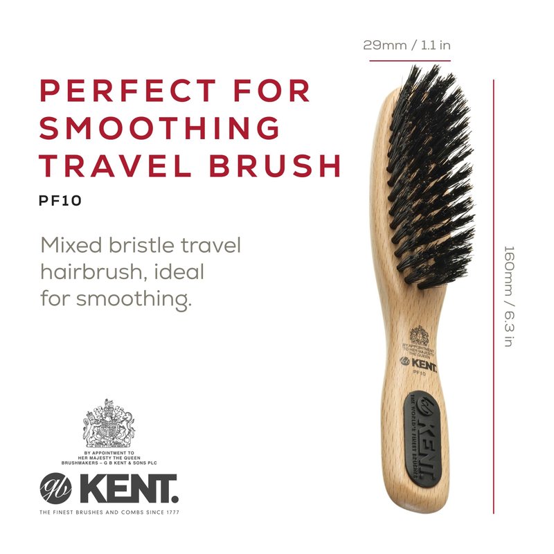 Kent PF10 Natural Boar Bristle Brush - Hair Straightening, Styling and Smoothing for Short to Medium Length Hair, Travel-Friendly