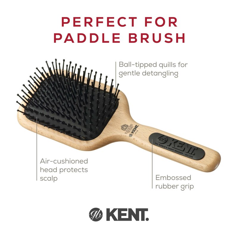 Kent PF18 Medium Cushion Paddle Brush - Detangling for Fine, Long, Thick and Curly Hair, Scalp Massager and Growth Stimulator, Wet or Dry Use. Made in England