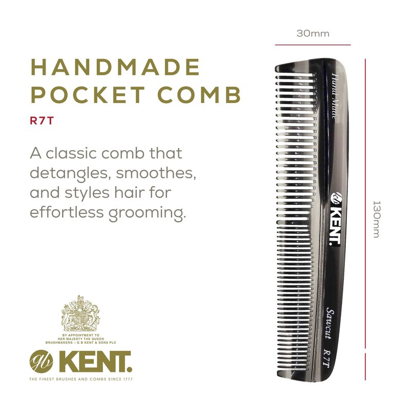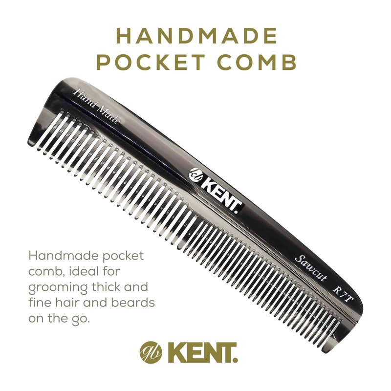 Kent R7T Double Tooth Hair Pocket Comb, Small Fine/Wide Tooth Comb For Hair, Beard and Mustache, Coarse/Fine Hair Grooming Comb for Men, Women and Kids. Saw Cut Hand Polished. Handmade in England