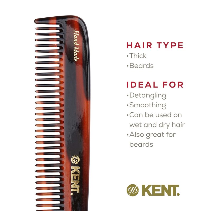 Kent R9T All Coarse Hair Detangling Comb Wide Teeth Dressing Table Comb for Thick Curly Wavy Hair. Hair Detangler Comb for Grooming Styling Hair, Beard and Mustache. Saw-Cut. Handmade in England