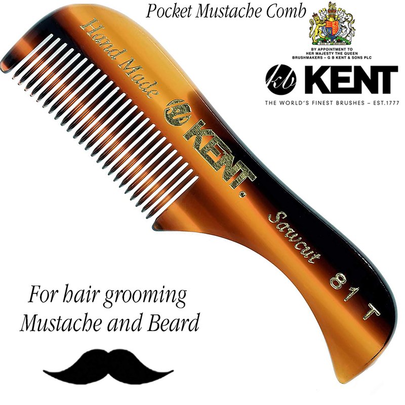 - 81T: 2.8 x 0.5 inch Tortoise Shell finish. Gentleman's fine tooth pocket combs for mustache and beard care, a must have for guys with beards and mustaches. Rounded tips for sensitive skin for a perfect detangle, shaping, styling and grooming your mustache and beard. Extra-Small travel sized portable design fits easily in your pocket. Great mini mustache hair and beard straightener comb for men