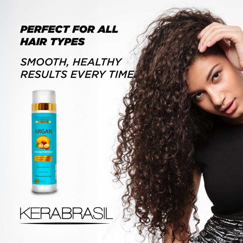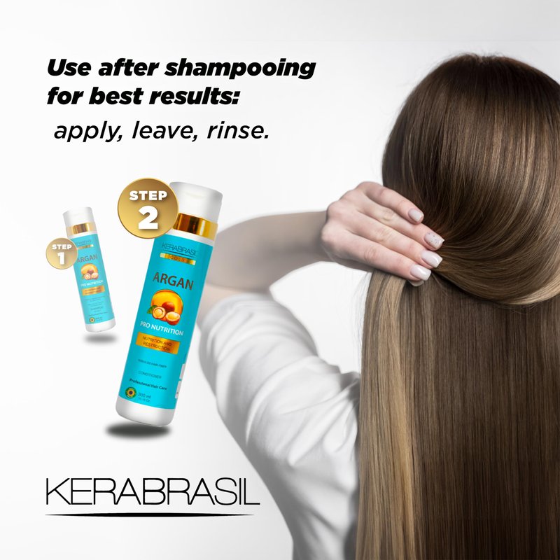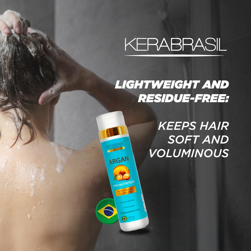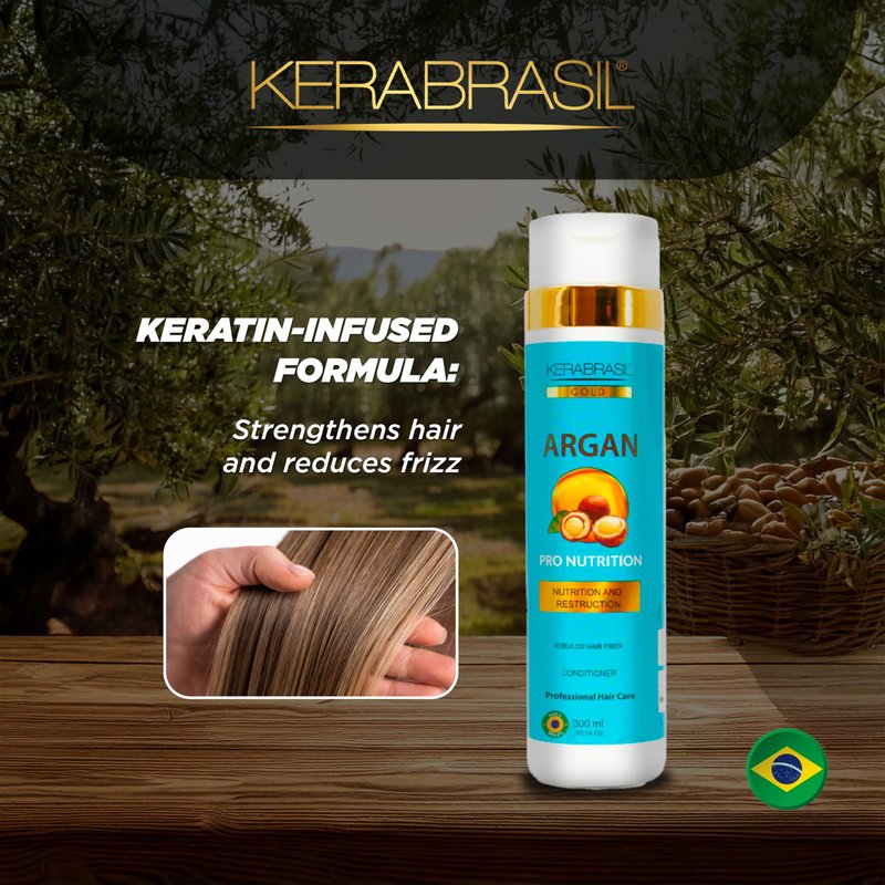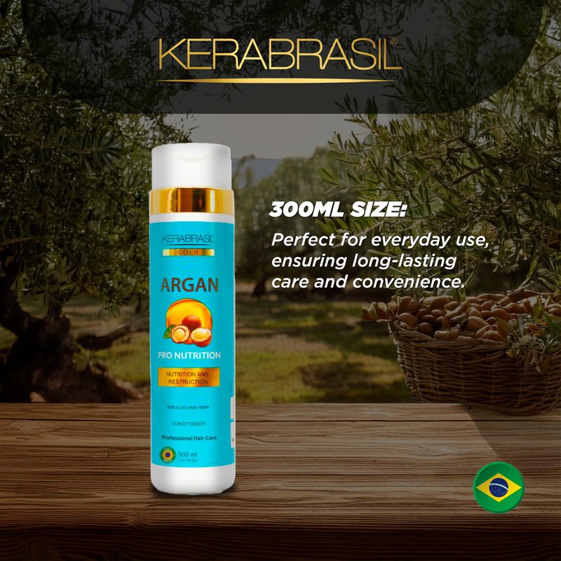 Introducing KERABRASIL's Argan Oil Hydrating Conditioner—your ultimate solution for achieving silky, smooth hair. This 300ml conditioner harnesses the power of Argan oil, known for its exceptional hydrating properties, and is enriched with Vitamin E, which plays a crucial role in protecting hair from damage while rejuvenating its appearance. Our carefully crafted formula also includes keratin, a key ingredient that helps to smooth frizz and strengthen hair fibers from within, promoting a healthier, more resilient mane. It's designed to work on all hair types, providing a lightweight solution that detangles without leaving residue, ensuring your hair stays voluminous and bouncy. Usage Instructions: Apply Generously: After using KERABRASIL Argan Oil Shampoo, apply conditioner generously from mid-lengths to ends. Allow to Absorb: Leave in for 1-2 minutes to let the nourishing ingredients work their magic. Rinse Thoroughly: Ensure complete rinsing to keep hair fresh and residue-free. Optimal Pairing: For best results, use in conjunction with our Argan Oil Shampoo to enhance your hair care regimen. Embrace the benefits of Argan oil with KERABRASIL and transform your hair into a stunning showcase of health and smoothness. Get ready to dazzle with every flip of your lusciously treated locks!