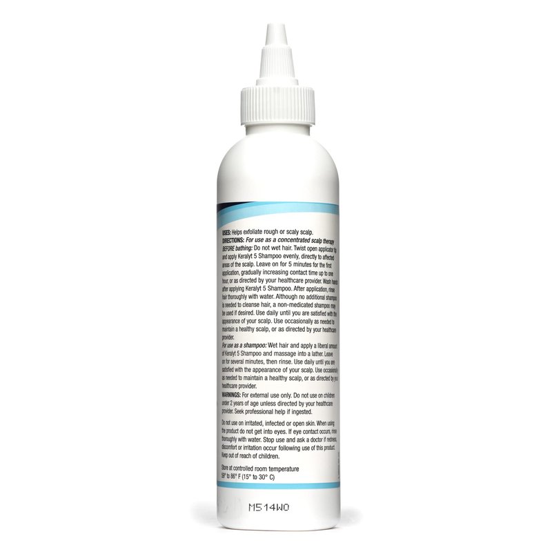 Keralyt 5 starts working immediately to exfoliate away unsightly skin redness, roughness, flaky areas, dryness, and itchy spots. Our unique compound is made to fight dandruff and scalp problems from a wide range of conditions like psoriasis, seborrheic dermatitis, and more. The applicator tip allows you to use this as a dry treatment before bathing or regularly as a shampoo. To use dry apply to the scalp before bathing and let sit. You'll want to let it set for as little as 5 minutes at the start but can work up to longer intervals of up to 1 hour. To use as a shampoo massage vigorously into wet hair for several minutes and rinse thoroughly. After use you can another non-medicated shampoo if desired.