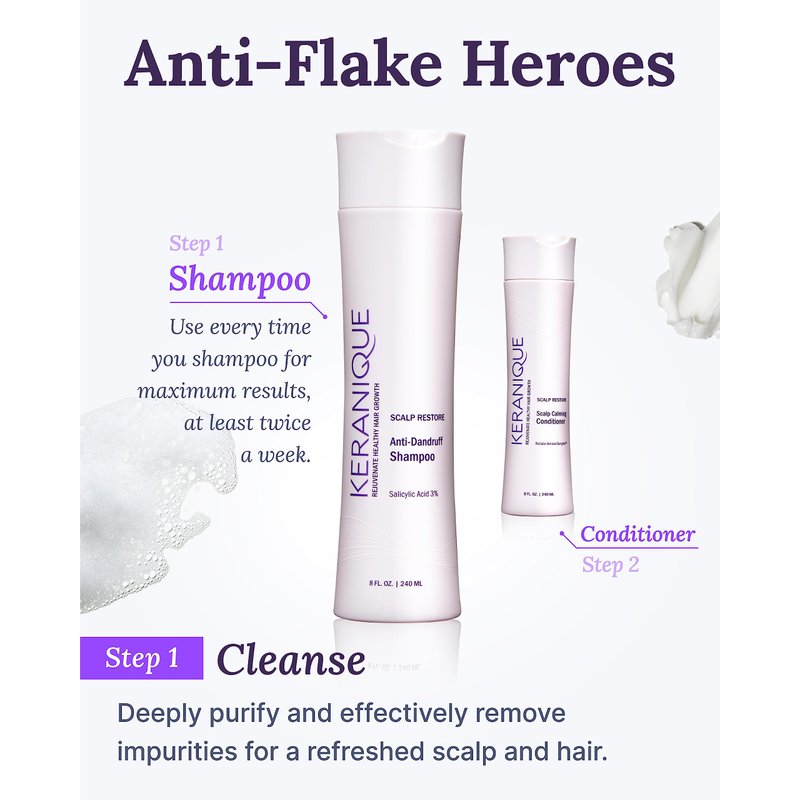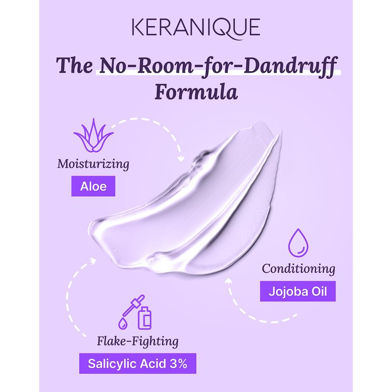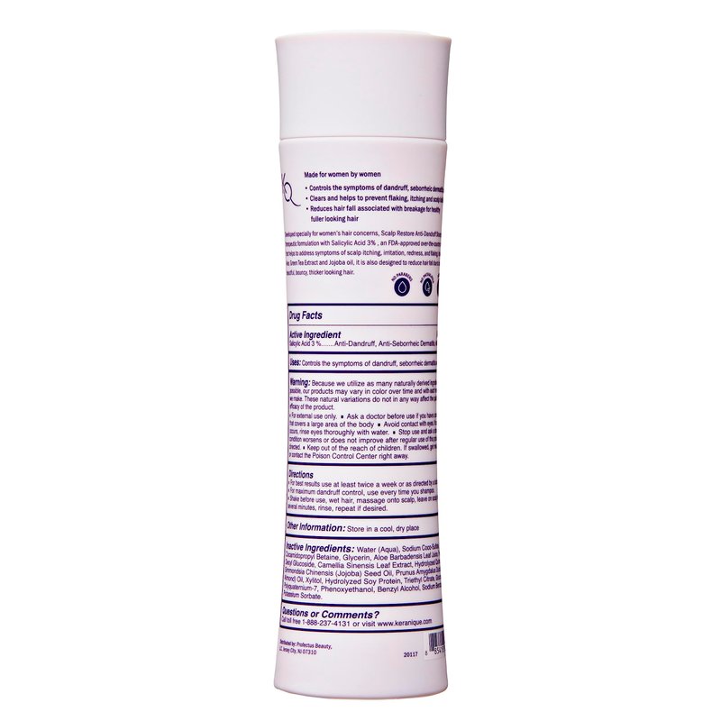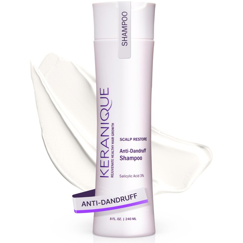 Keranique Anti Dandruff Shampoo for Women, Clinical, Gentle for Color Treated Hair, Best for Itchy, Dry Scalp, Clarifying Antidandruff Shampoo with Salicylic Acid - Adds Strength to Hair