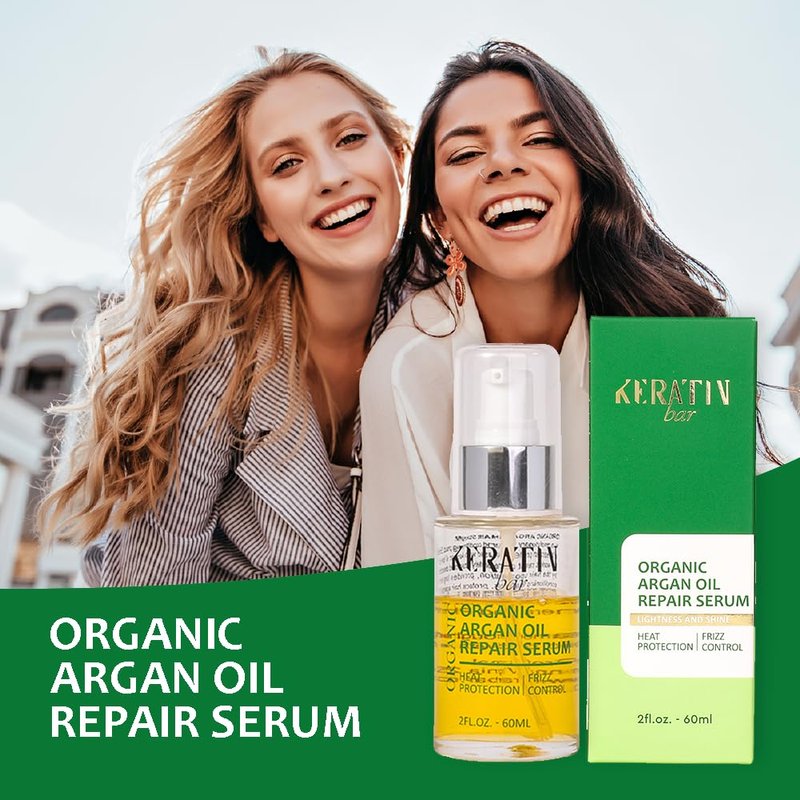 KERATIN BAR 100% Organic Argan Oil Anti Frizz Hair Serum Styling Smoothing Strengthening Hydrating & Nourishing Heat Protection Shine Frizz Control Dry Damage Hair Repair (Argan Oil Serum)