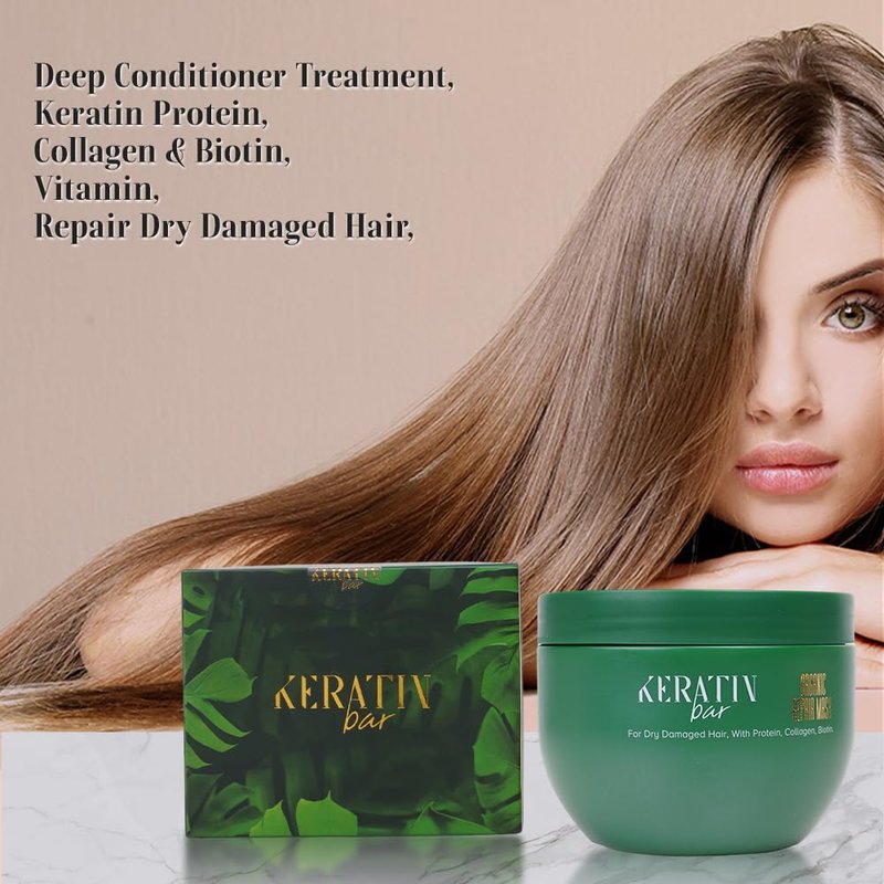 KERATIN BAR Hair Mask Deep Conditioner Treatment, Keratin Protein, Collagen, Repair & Dry Damaged Hair, All Hair Types, Vitamin (Organic Hair Mask)