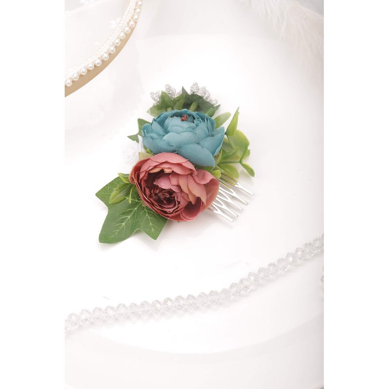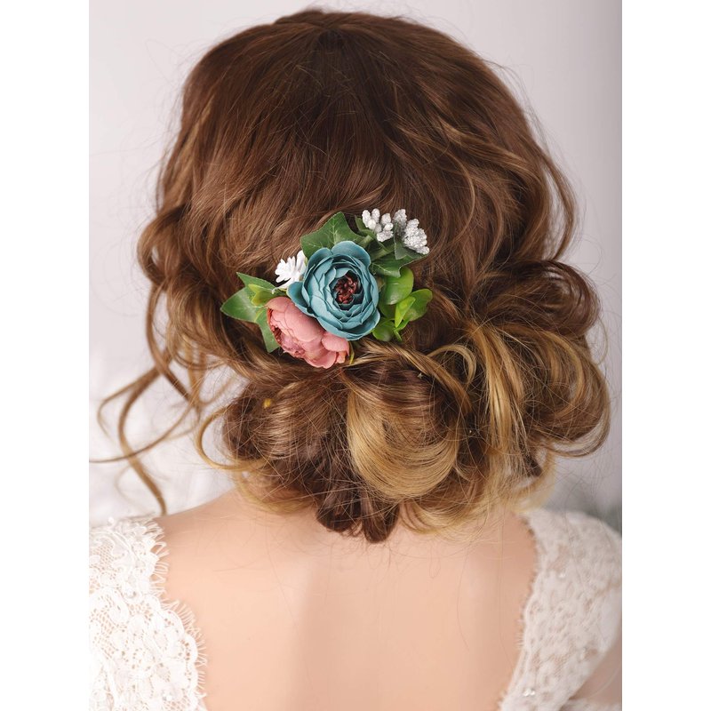 Kercisbeauty Dusty Blue Floral Hair Comb Wedding Bridal Headpiece Girl Prom Hair Accessories Garden Wedding Hair Dress
