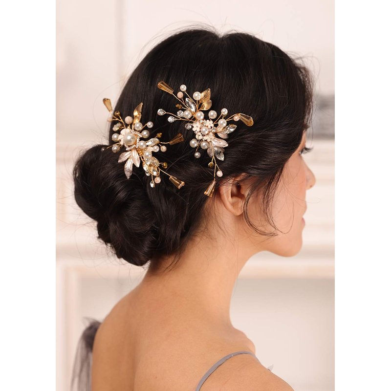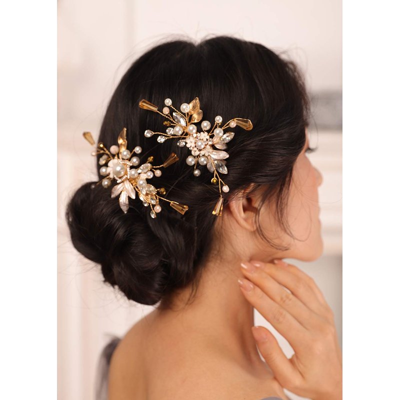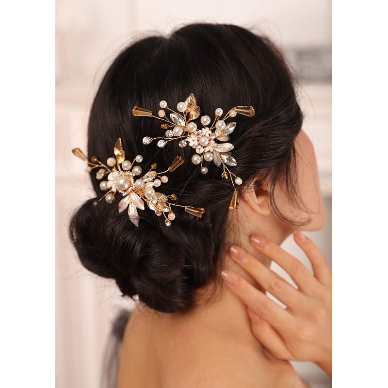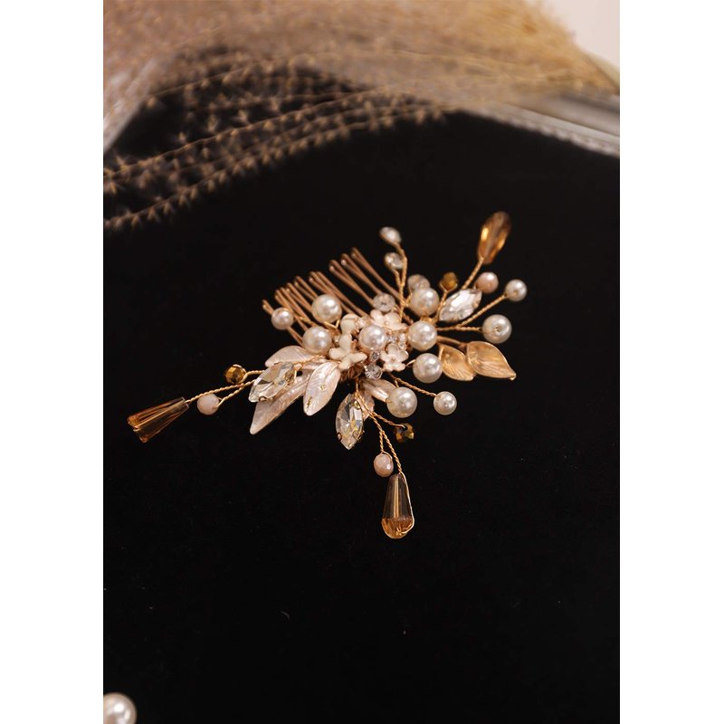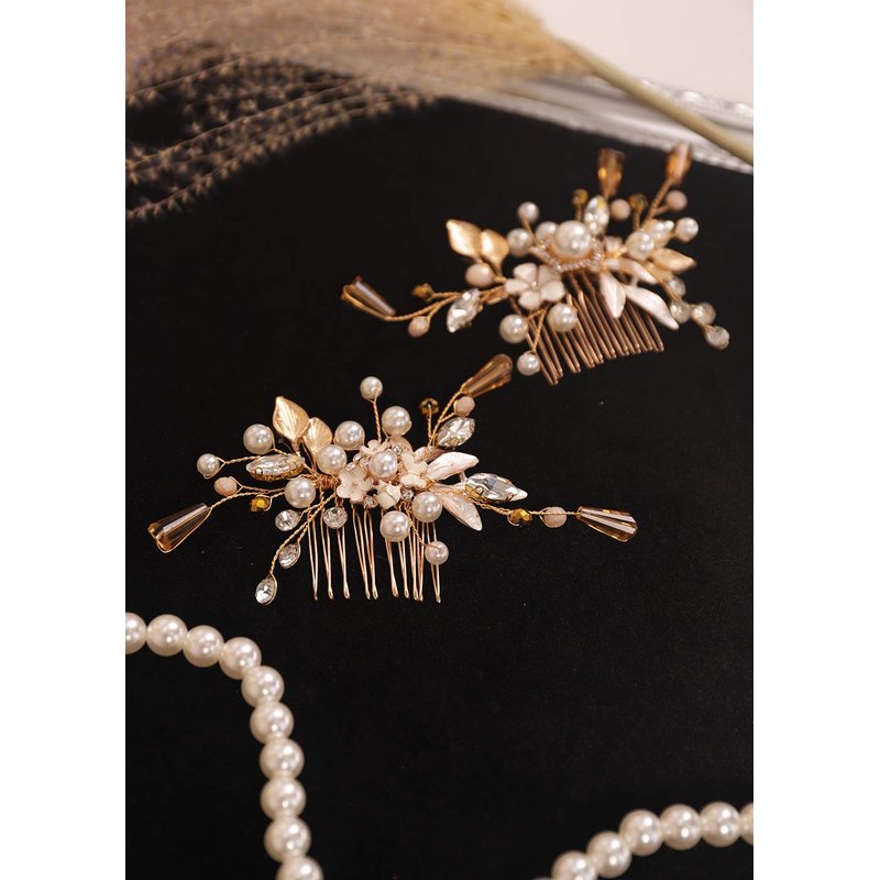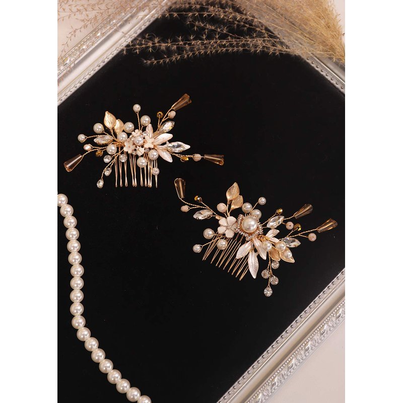 Kercisbeauty Gold Hair Comb Set for Women Wedding Bridal Headpiece with Champagne Crystal Pearl Hair Accessories