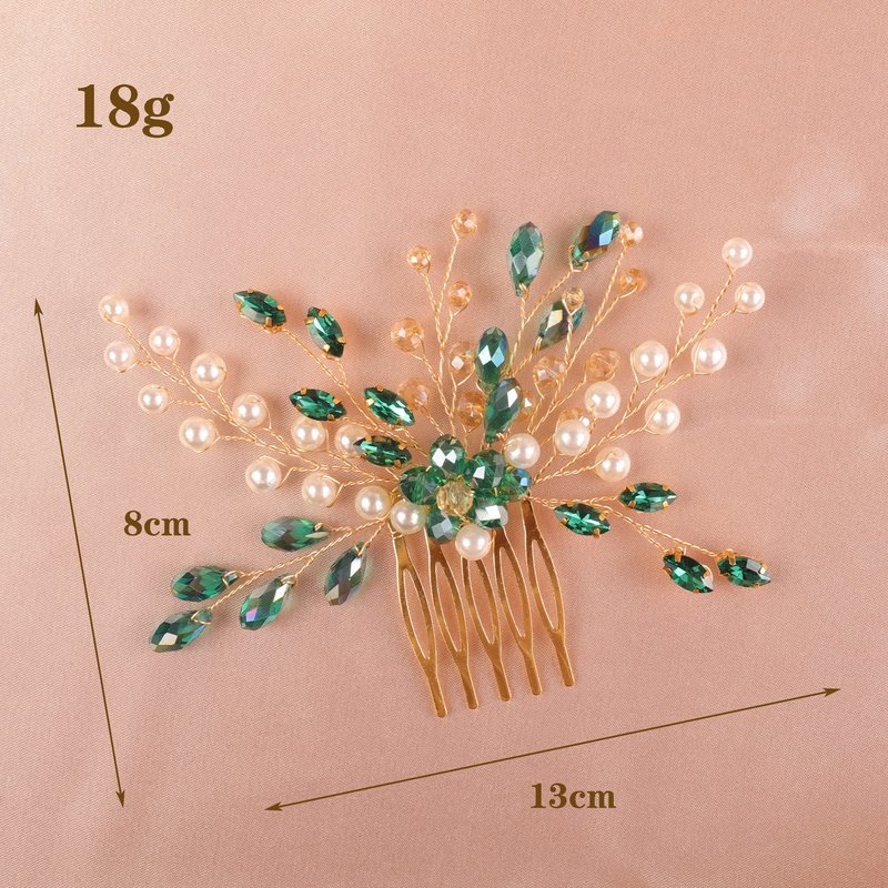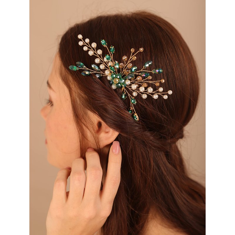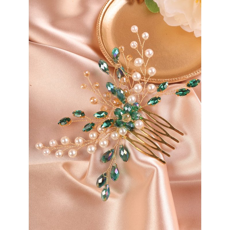 Kercisbeauty Green Crystal Emerald Gold Hair Comb for Wedding Brides Bridesmaid Hair Accessory for Women and Girls Ball Prom Party