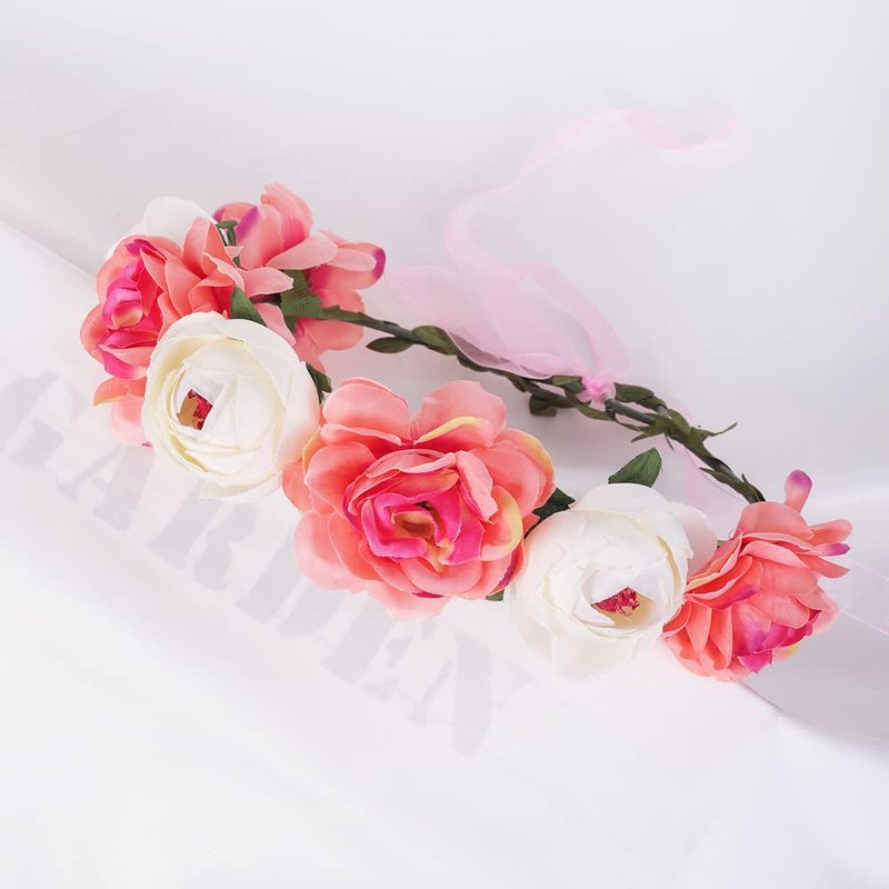 Kercisbeauty Rustic Floral Wreath Crown for Wedding Brides Flower Girls Pink Blush Rose Flower Headband Tiara Hair Accessory for Women Girls Prom Halloween Party (Pink)