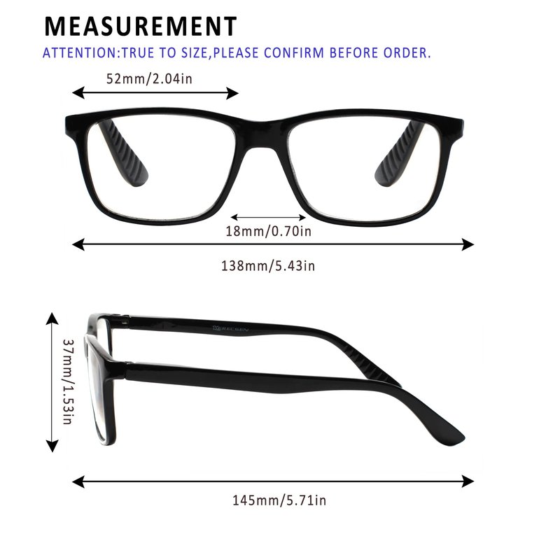 Specification: Width of the forehead frame :138mm/ 5.43" (approx.) Lens Height:36mm/ 1.42" (approx.) Lens Width : 52mm/ 2.05" (approx.) Leg Length :140mm/5.51" (approx.) Color:Black Brown Blue Tortoise Gray Please specify the frame color and lens strength when pay for this.Thanks! Classic-shaped frames, look good on any face. help glasses fit your face Material : PC Frame, AC Lens,Head Size:Narrow to Medium。 Diopter available: +1.0 +1.5 +2.0 +2.5 +3.0 +3.5 +4.0 Other diopter: +1.25 +1.75 +2.25 +2.75 +4.5 +5.0 +6.0 Note:Due to the difference between different monitors, the picture may not reflect the actual color of the item. Thank you! Size for manual measurement, there may be a 0 to 1 cm error, belongs to the normal phenomenon. Package includes: 5 x Reading Glasses If you have any problems with our items or services, please feel free to contact us . We will do our best to solve any problems and provide you with the best customer services. Thank you