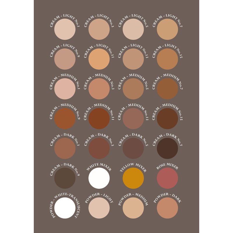 Keromask Mineral Rich Finishing Powders come in four shades (translucent, light, medium and dark) ensuring a perfect colour match for all skin types. These powders not only set the foundation, helping to keep it waterproof and in place, but also prepare the skin for additional products to be applied, e.g. eye shadows and blushers. Once the base is set, any additional products will easily glide on to the skin.