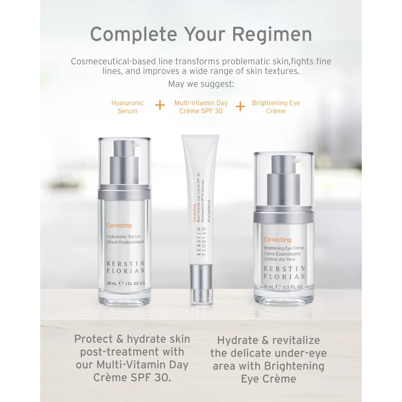 - APPLICATION. Apply daily to cleansed skin and follow with moisturizer. Protect and hydrate skin post-treatment with our Multi-Vitamin Day Crème SPF 30. Hydrate and revitalize the delicate under eye area with Brightening Eye Crème.