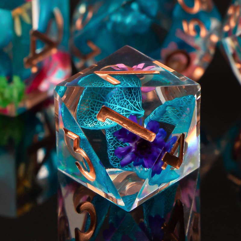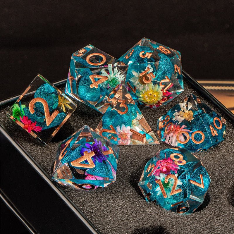 KERWELLSI DND Sharp Edge Dice Set, 7 Piece Resin Dice Set, Polyhedral Dice Set for Dungeons and Dragons Dice, Flower D&D Dice Set, RPG Role Playing D and D Dice D20 D12 D10 D8 D6 D4 with Box