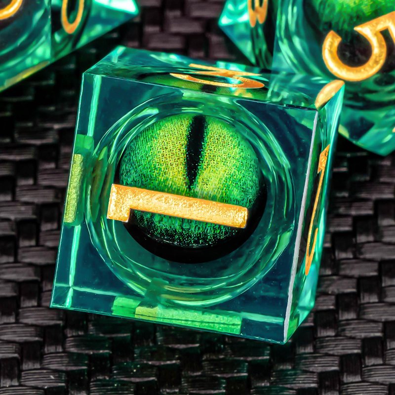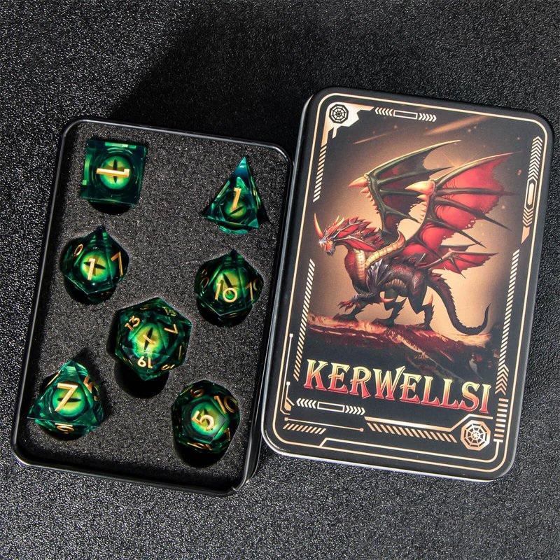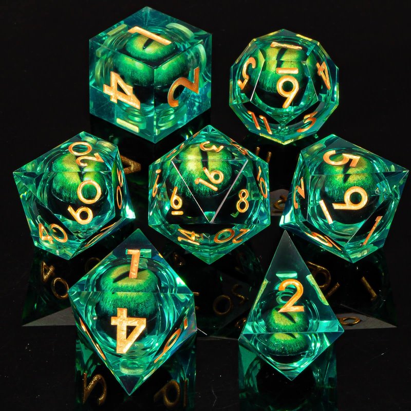 KERWELLSI Float Beholder's Dragon Eye Dice, 7Pcs Liquid Core DND Dice Set D&D, Dungeons and Dragons Sharp Edge Resin Dice with Gift Box, Polyhedral Role Playing RPG D and D Dice D20 D12 D10 D8 D6 D4