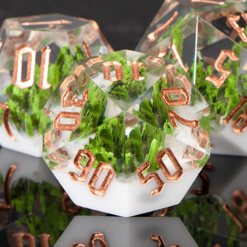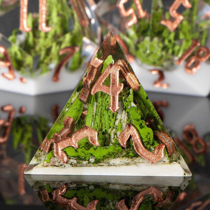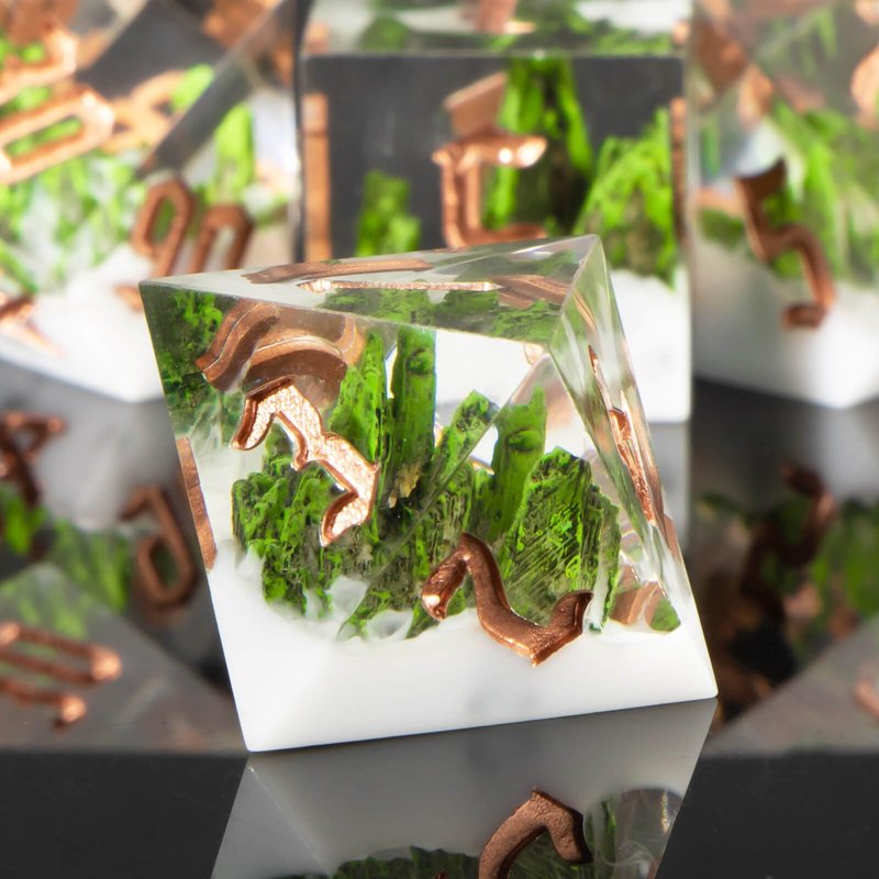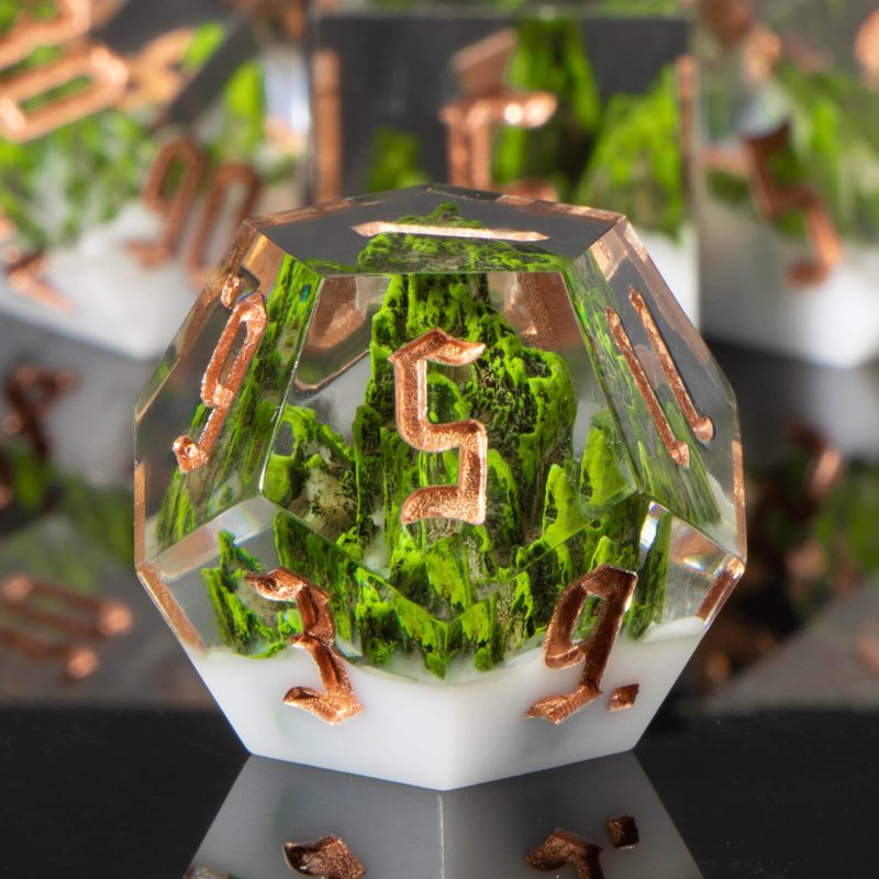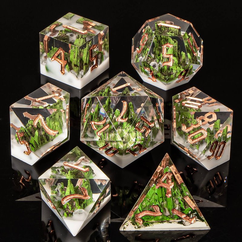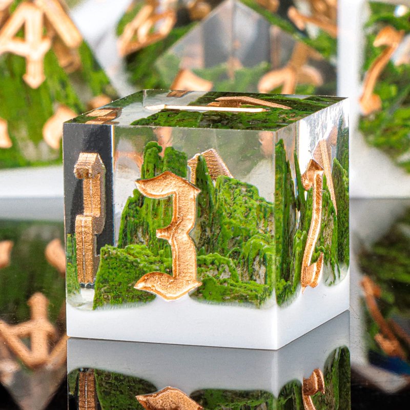 - Mountain Dice Set : Resin dice is a mountain forest as the theme, the use of pure hand-carved, showing the beauty of nature