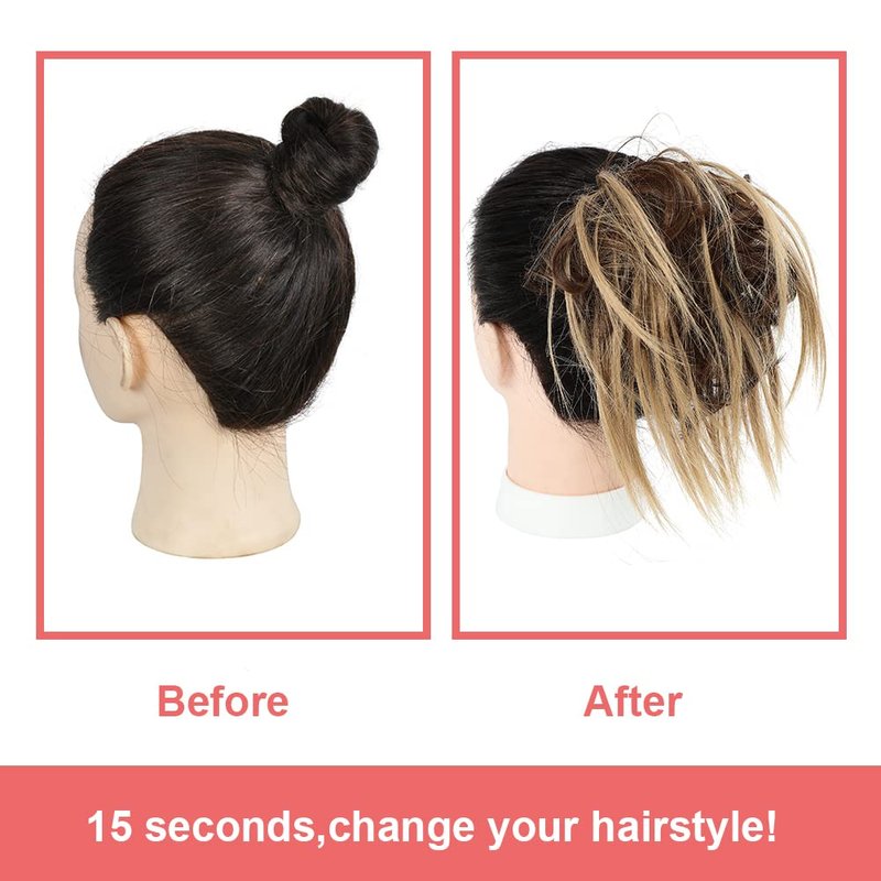 - 3.Messy bun hair piece use of high-elastic rubber bands,durable and hard to break,after wearing,it won't fall off all day.