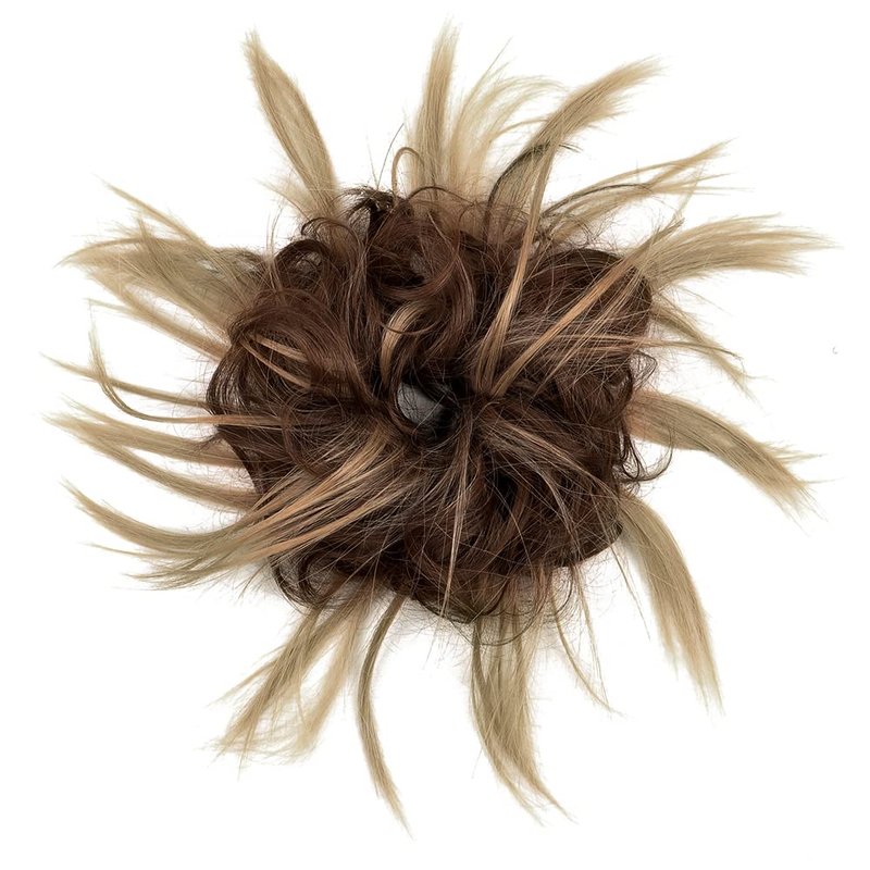 KETHBE Messy Bun Hair Piece,Synthetic Tousled updo Hair Buns Hair Piece Short Ponytail Faux Hair Scrunchie Extension with Elastic Rubber Band Fake Hair Bun Pieces for Women (Brown Mix Ash Blonde)