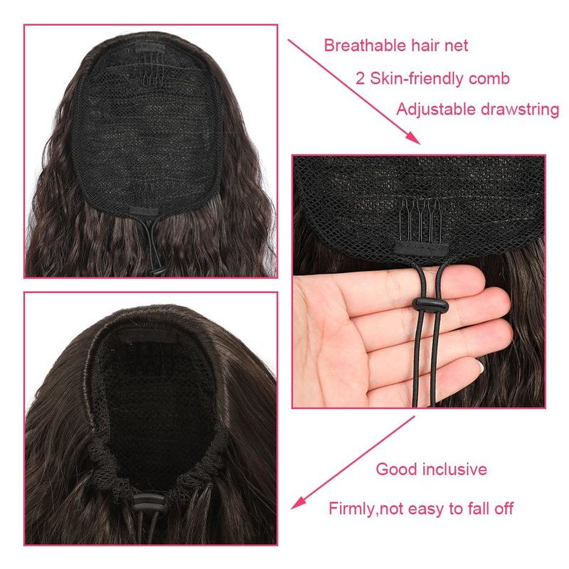 - 3.Drawstring Design: We use drawstring design,makes ponytail easy to wear,it only takes 1 minute to have a voluminous long ponytail extension.And adjustable drawstring with 2 combs,so that the curly ponytail wears more firmly does not easily fall off.