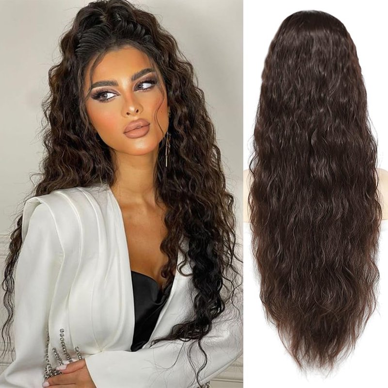 KETHBE Ponytail Extension, 26 Inch Drawstring Ponytail Hair Extensions Synthetic Long Curly Wavy Hair Extensions Ponytail Thick Hair Pieces for Women (Dark Brown)