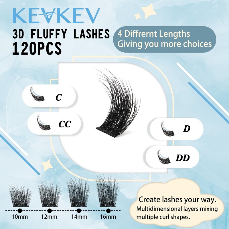 - New Series for Your Lashes: KevKev 3D series lash clusters adopted super soft and lightweight materials to creat multidimensional cluster lashes for DIY lashes make up. These 3D style lashes are designed to offer the fluffier appearance that more naturally extension look like real lashes.